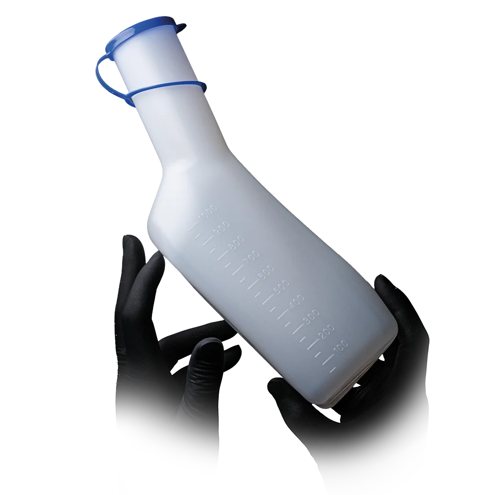 PP Urinflasche für Frauen, 1 Liter, Farbe durchscheinend mit weißem PE Deckel, Top-Comfort